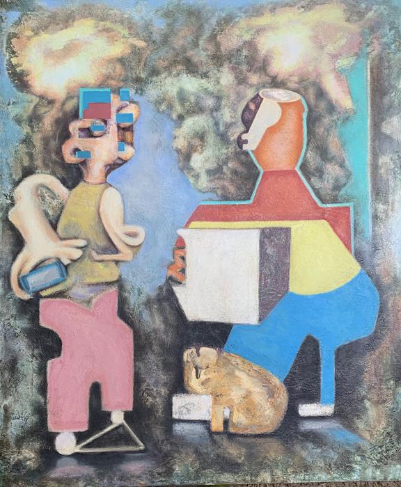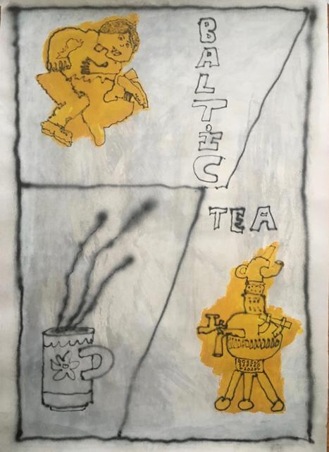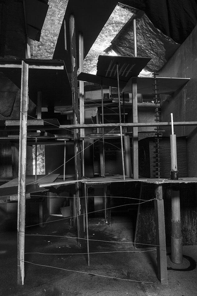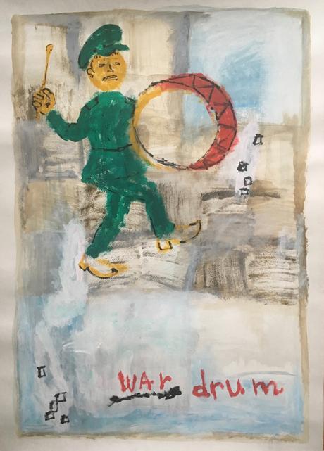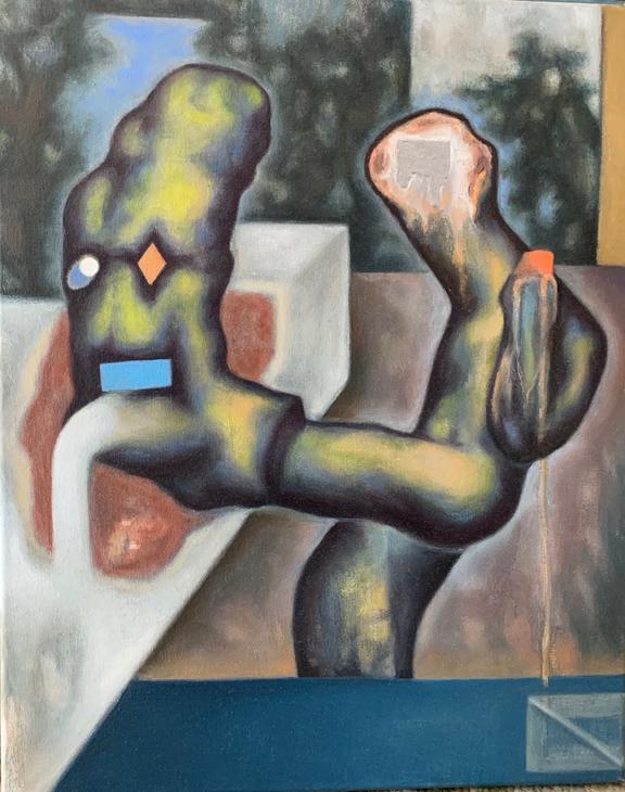 James Cicatko (Seattle, Washington) incorporates layers of symbolism in all his work, pulling images from history and pop culture as well as folklore and current news. In this large graphite drawing, two unseen experts play a game of chess in a Piranesi ruin with a view to a Syrian street bombing. Nero, Caligula, Elagabalus, and Diocletian watch and feast surrounded by cash, music boxes, and the dead. Game pieces range from a traditional bishop to Jake the Alligator Man as well as figures from Picasso, Bosch, and Giotto. Please note the scene takes place on a sarcophagus that is a nest for spiders and scorpions.