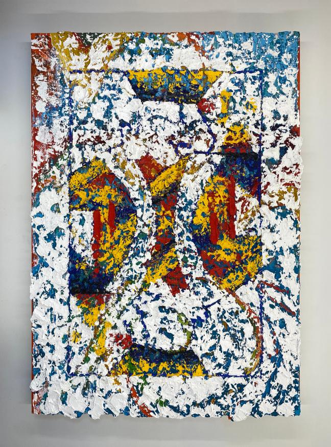 Suicide King (large), 2021, oil, alkyd, and cold wax on canvas on panel, 51 x 36 inches.