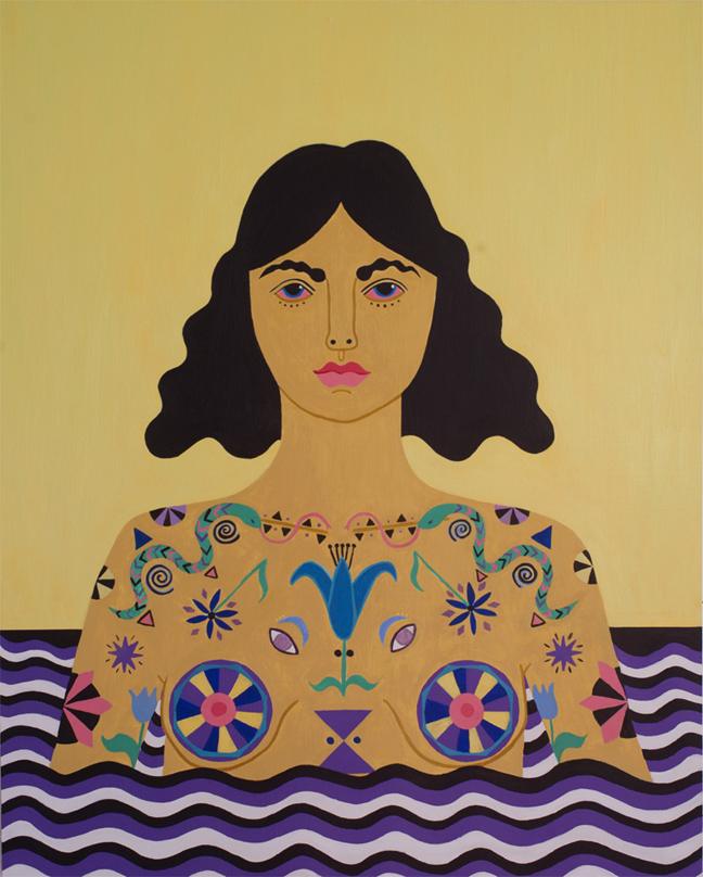 Caris Reid, Water Warrior (Yellow Sky), 2014, acrylic on panel, 24 x 30 inches.